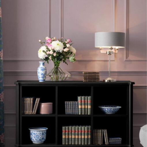 Crafted from predominantly solid birch but with some birch veneer modern materials the Laura Ashley Garrat two drawer single bookcase features one deep drawer and one small one. It also has three shelves; two adjustable and one fixed for flexible storage. The bookcase is stained to enhance the natural wood effects and is sure to suit any home. Only the top half needs to be positioned and attached to the base to begin enjoying this piece; full assembly is not required.